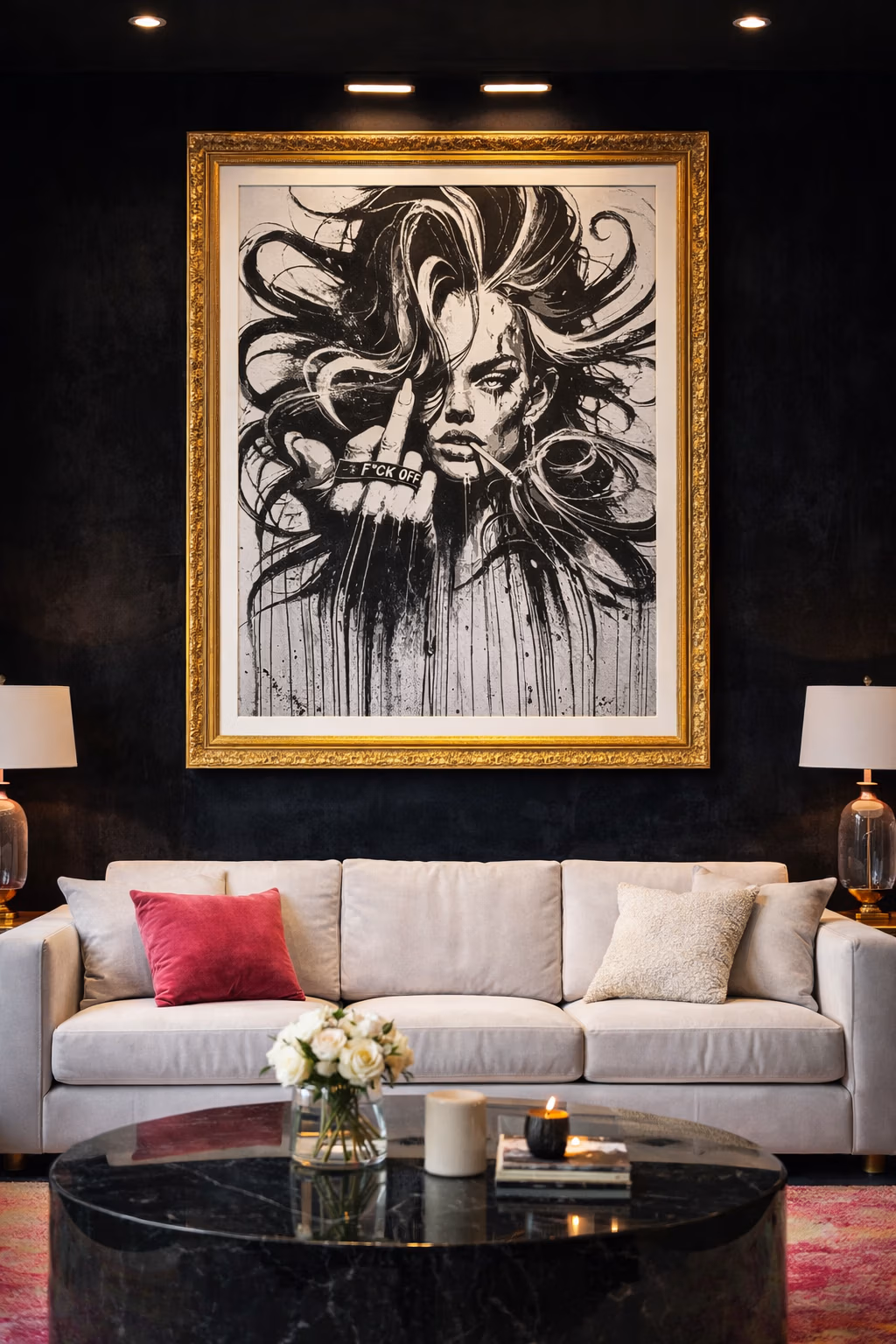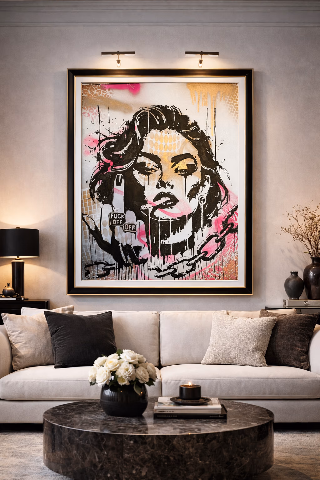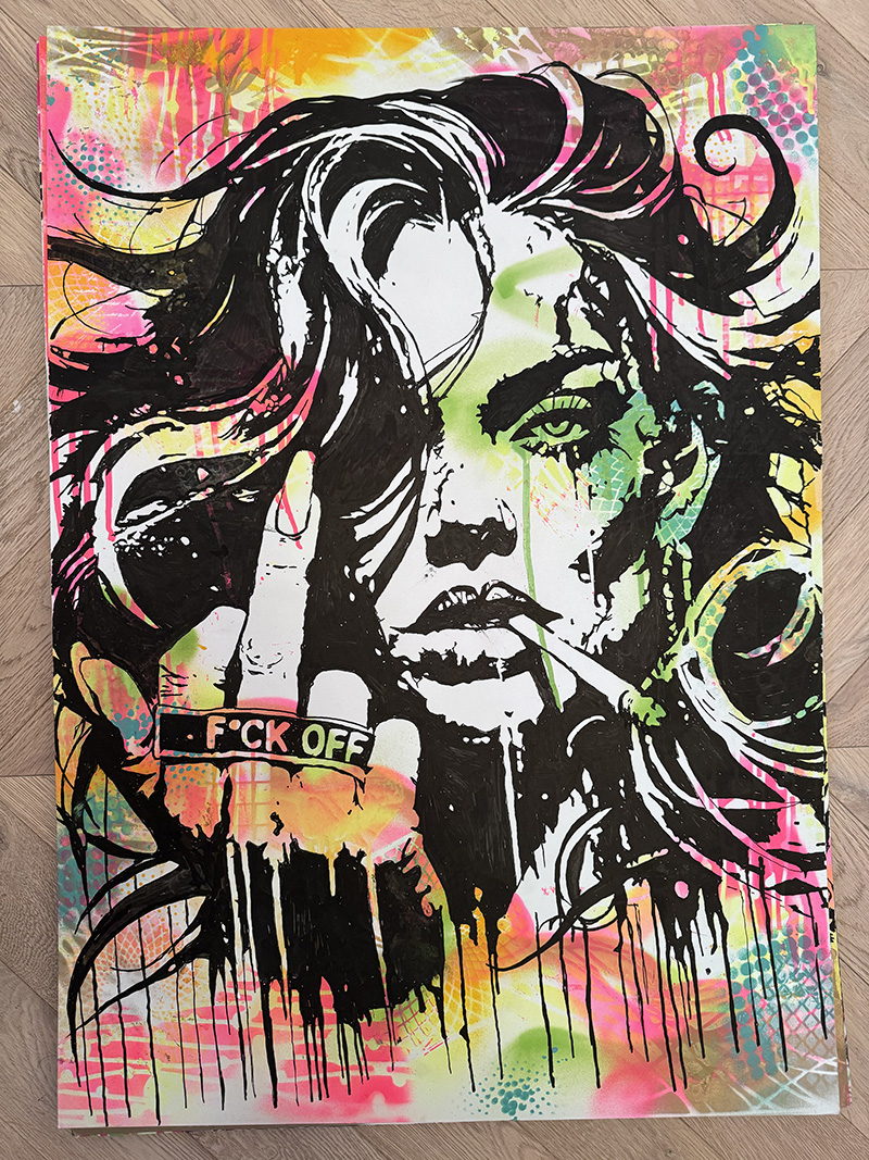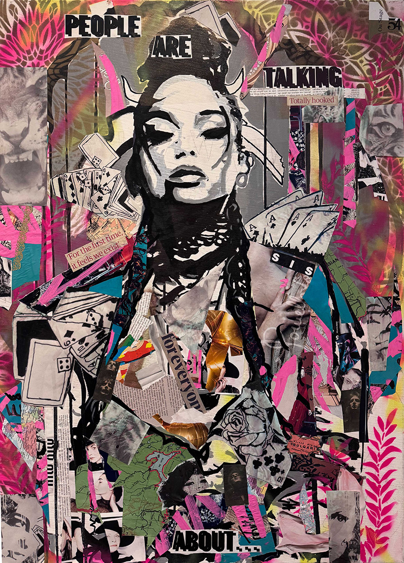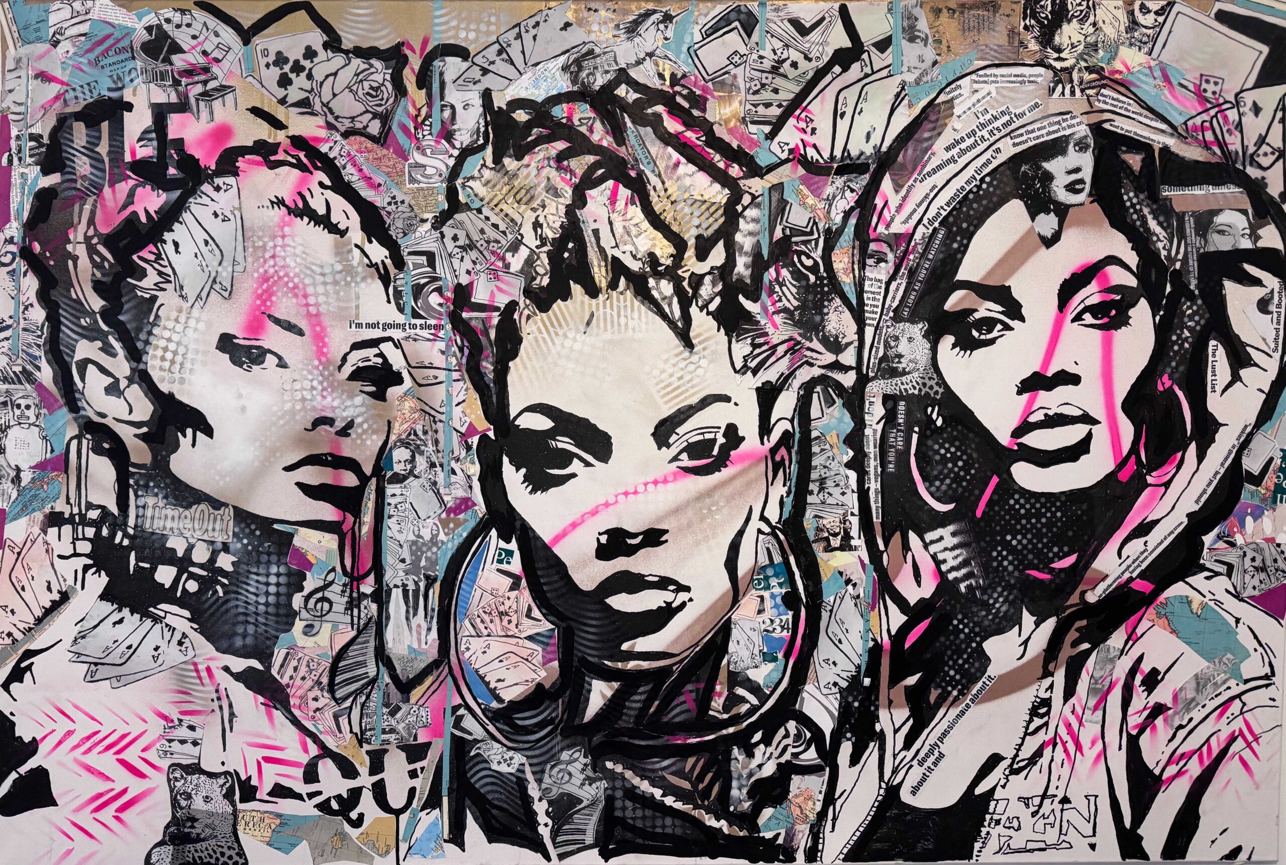 Mixed media on canvas. A central figure refuses the demand to perform pleasantness. The hot pink typography explodes across the composition—part graffiti, part manifesto. This work captures the moment of refusal, when compliance is rejected in favour of authenticity.