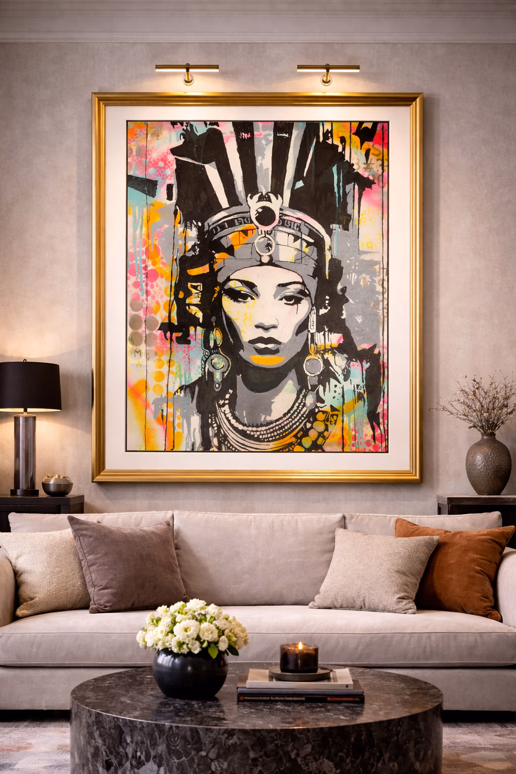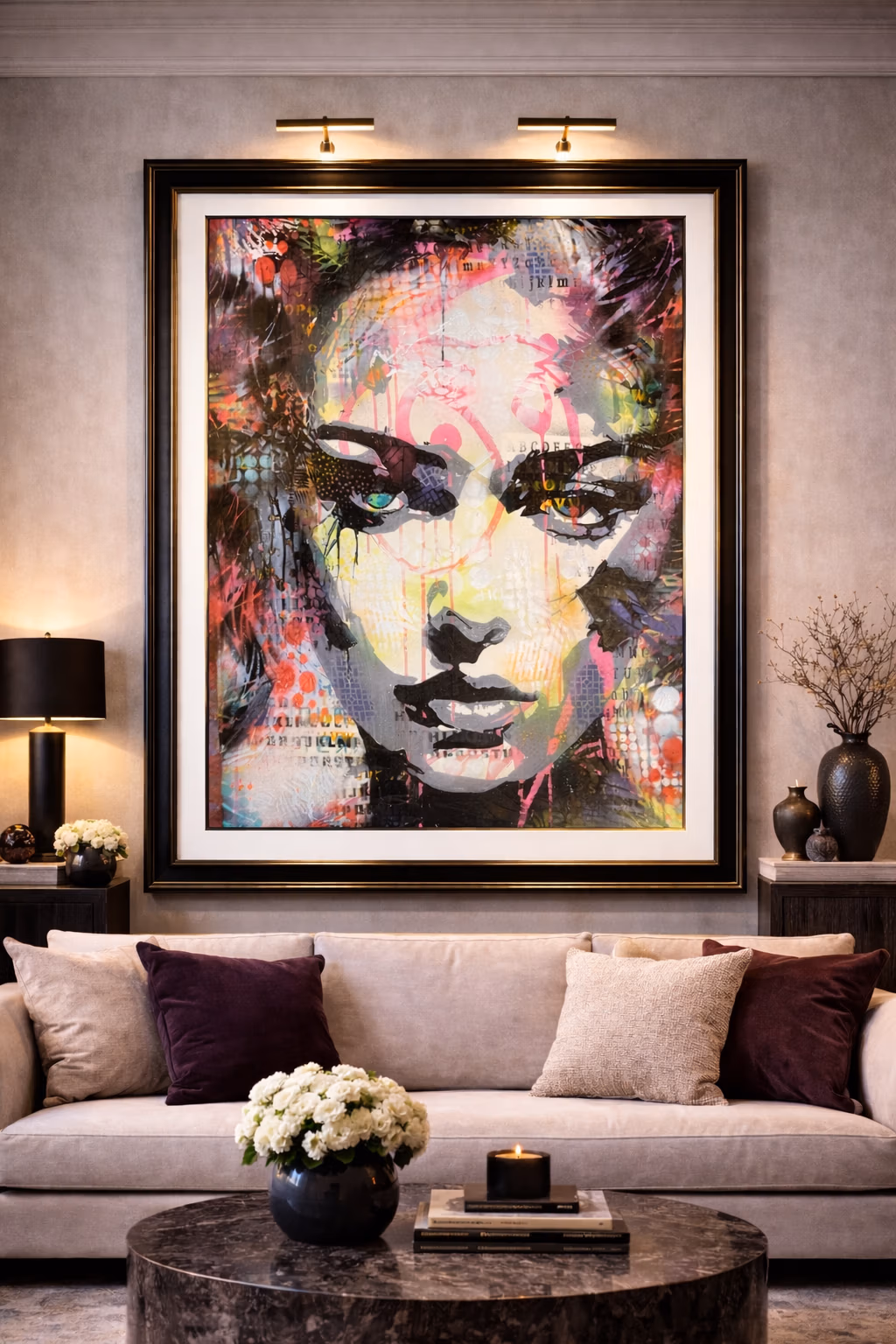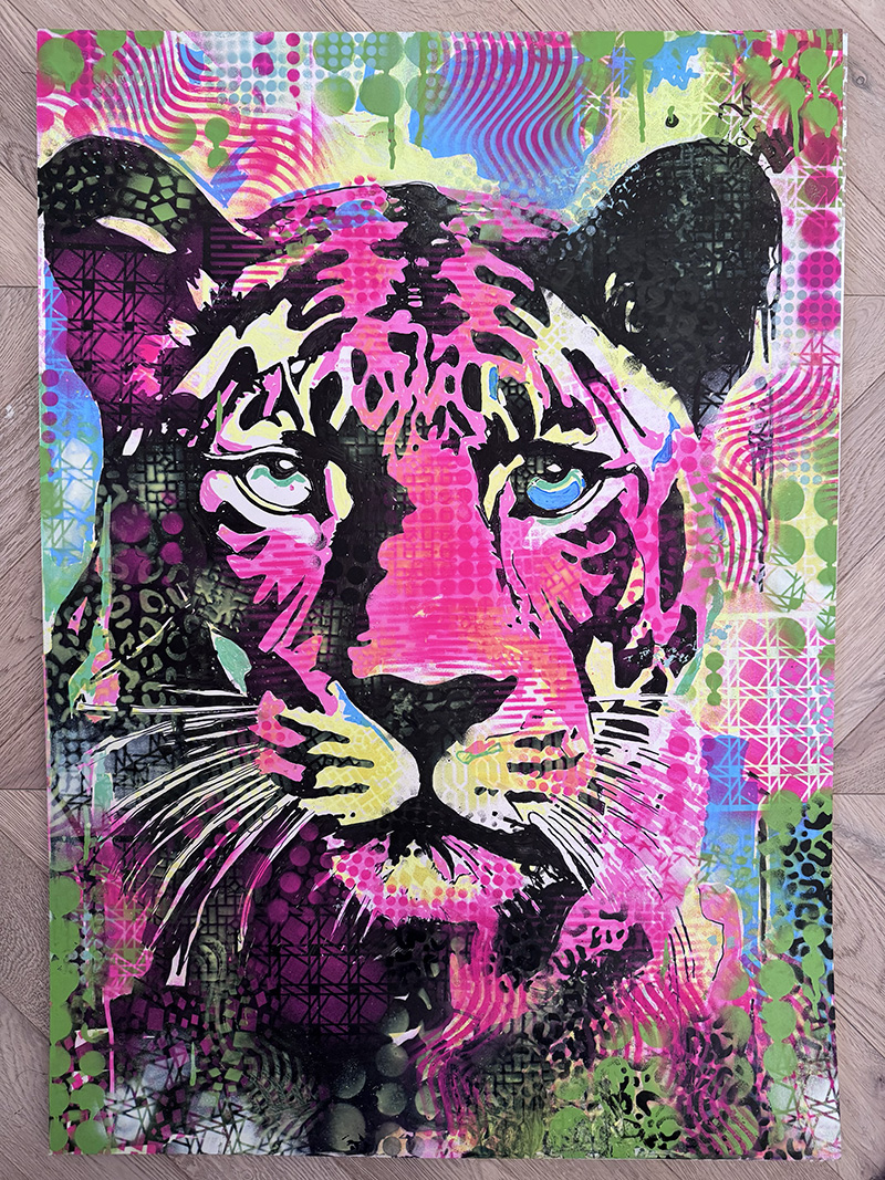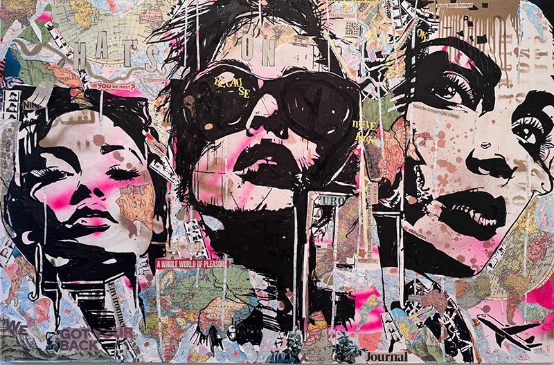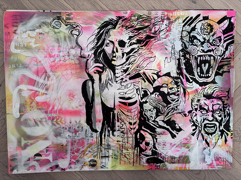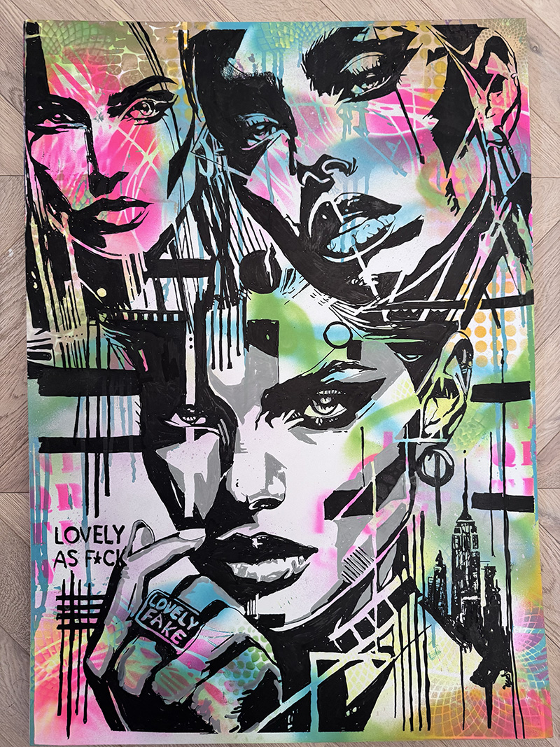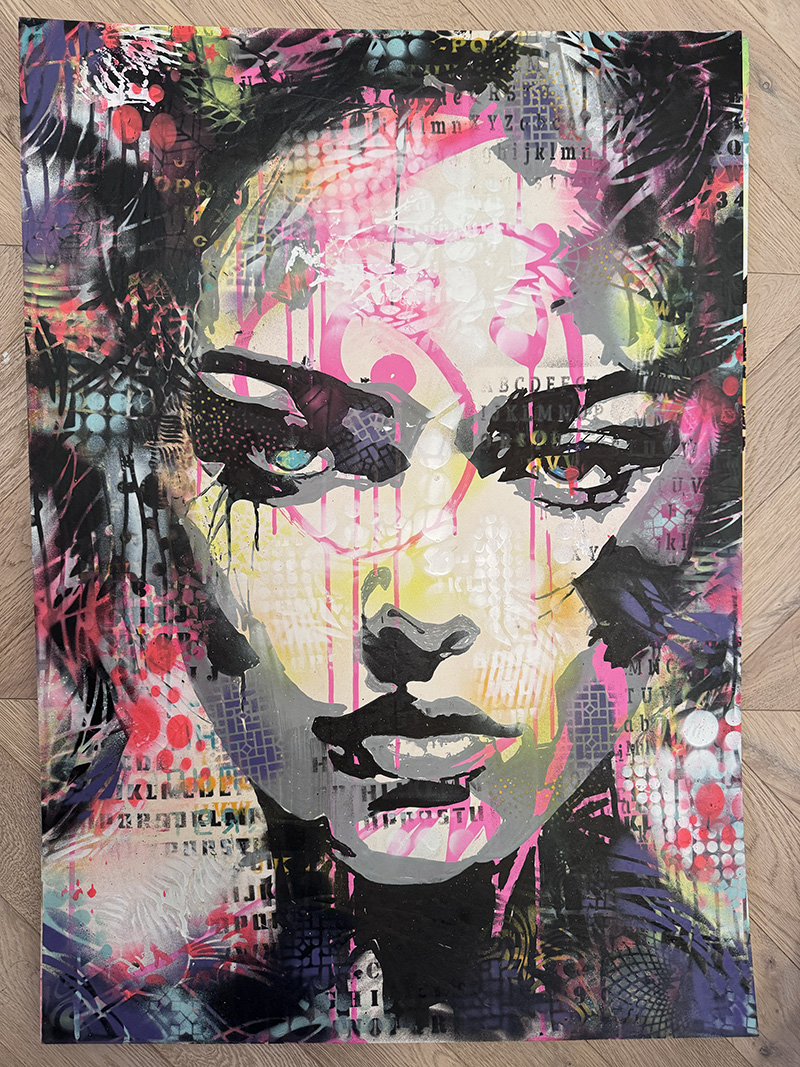 Medium: Mixed media, spray paint, stencil on canvas